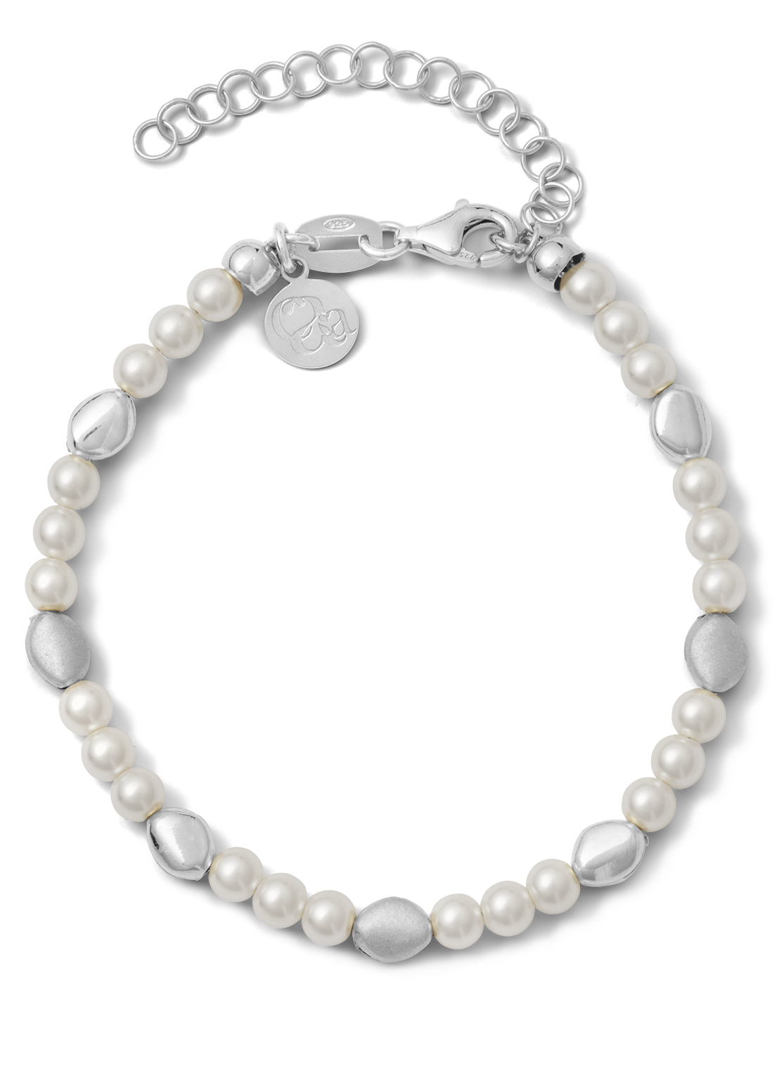 Parelarmband met organische zilveren matte en shiny steentjes, lengte 16+5cm