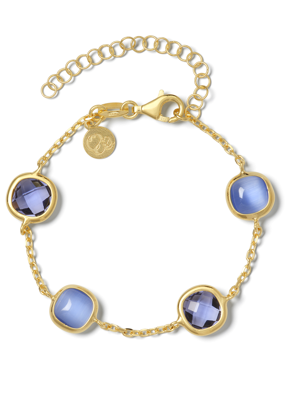 Goud vergulde armband met blauwe matte en shiny zirkonia, lengte 16+5 cm