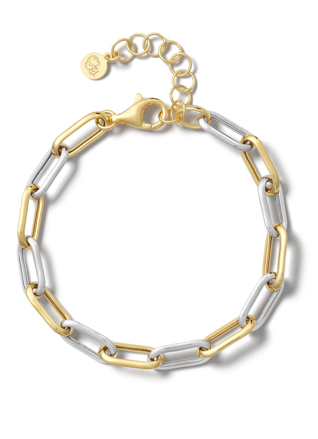 Bicolor zilveren schakelarmband, lengte 17+4 cm