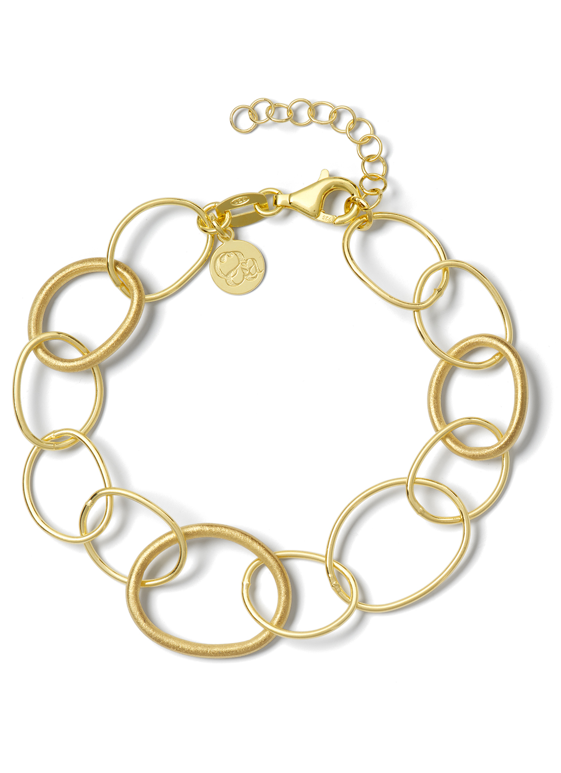 Goud vergulde armband met shiny en matte ringen, lengte 18+3 cm