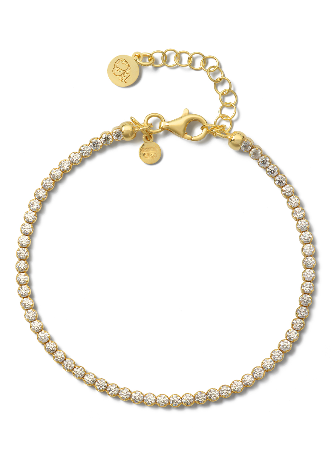 Goud vergulde zilveren tennisarmband met zirkonia, lengte 16 + 3 cm
