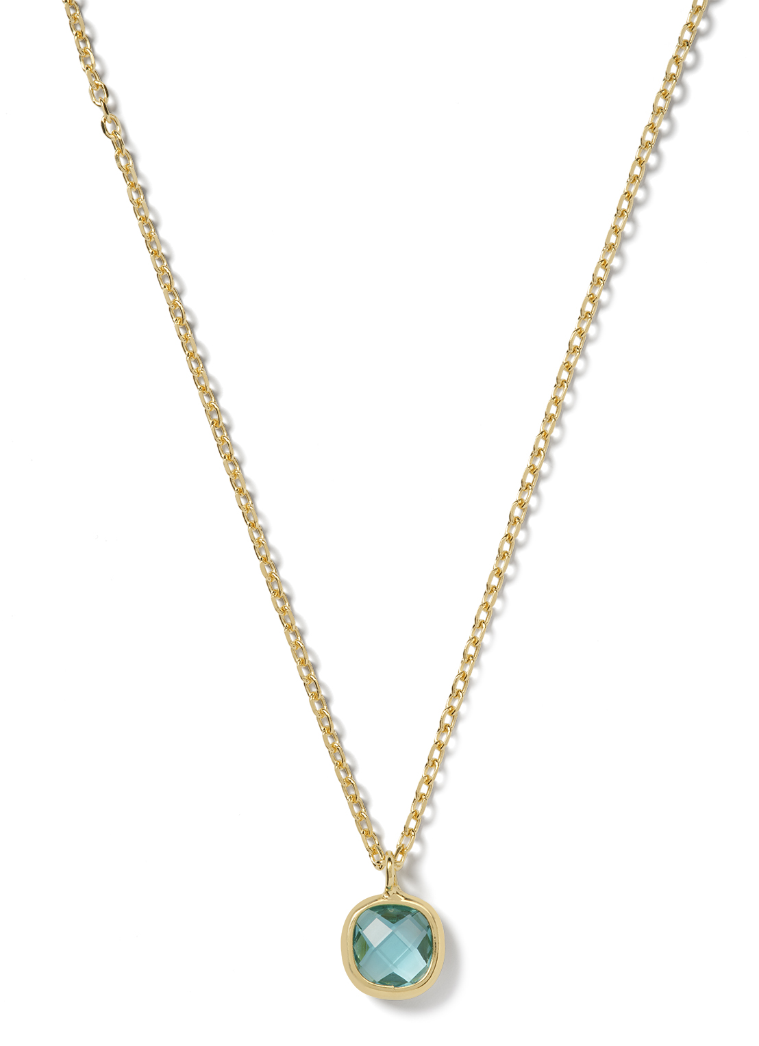 Goud verguld zilveren collier met mintkleurige zirkonia hanger, lengte 38 + 5 cm