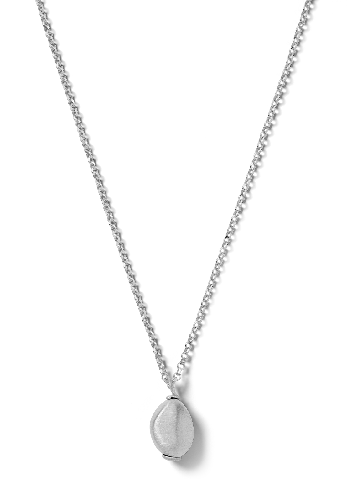 Zilveren collier met gesatineerde organische hanger, lengte 38 + 5 cm
