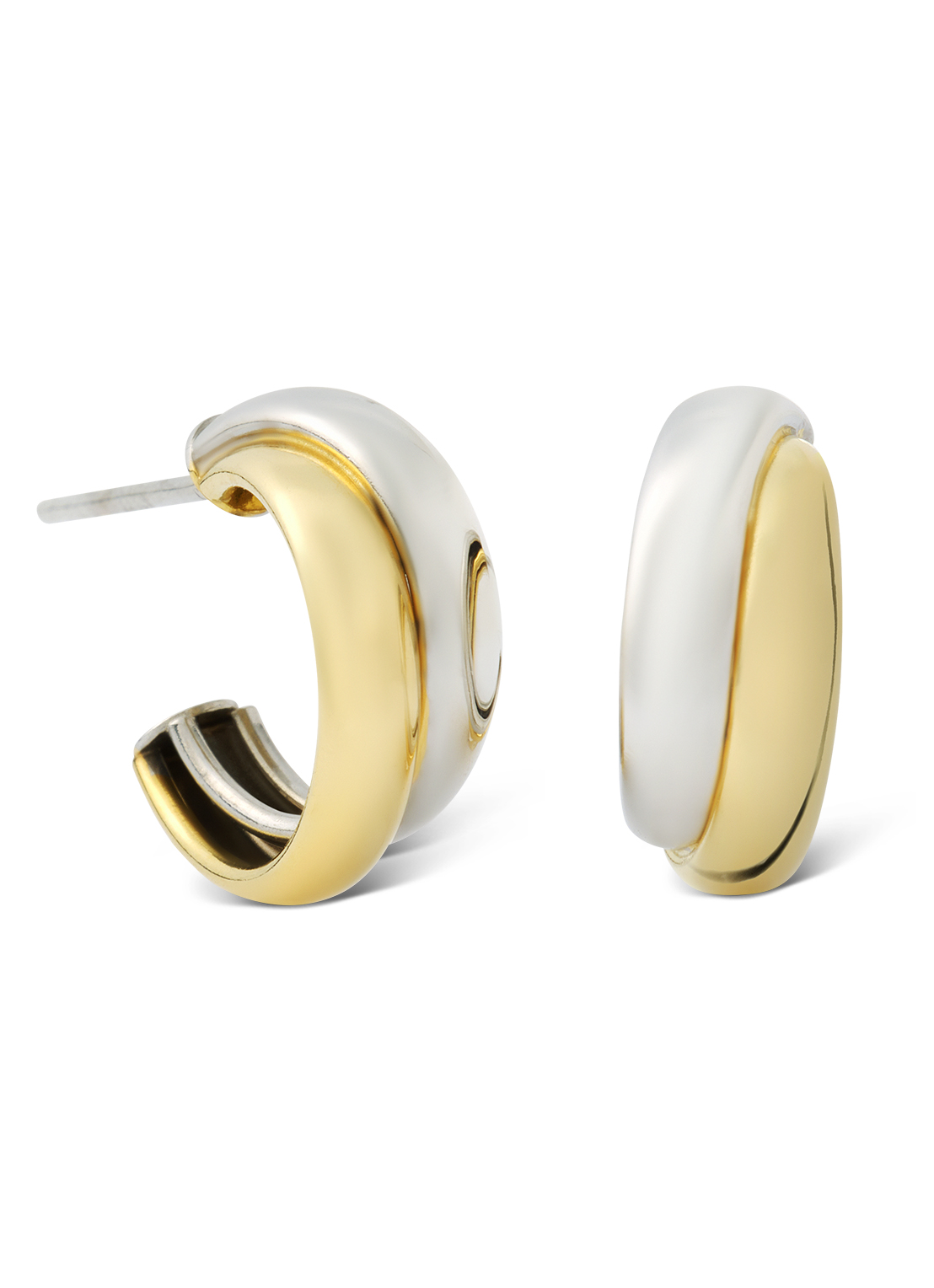 Bicolor zilver en goud vergulde oorstekers, diameter 15 mm