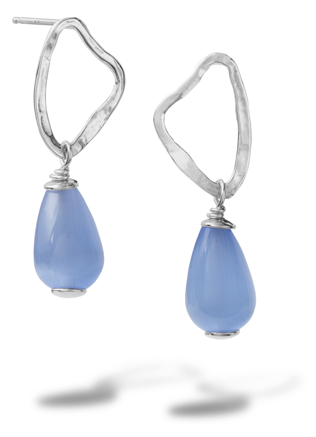 Zilveren organische oorhangers met blauwe zirkonia parel, lengte 30 mm