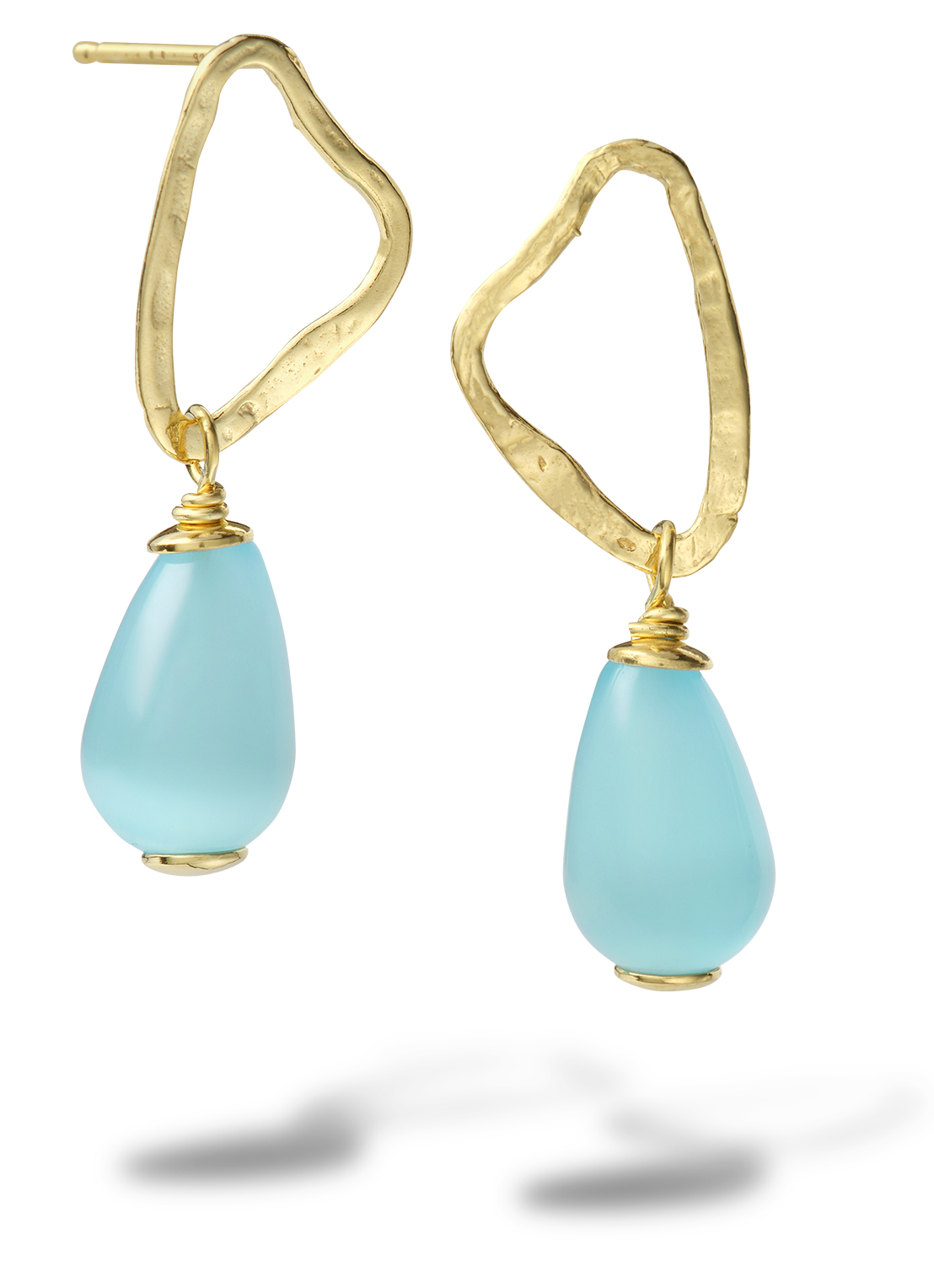 Goud vergulde zilveren organische oorhangers met mintkleurige zirkonia parel, lengte 30 mm