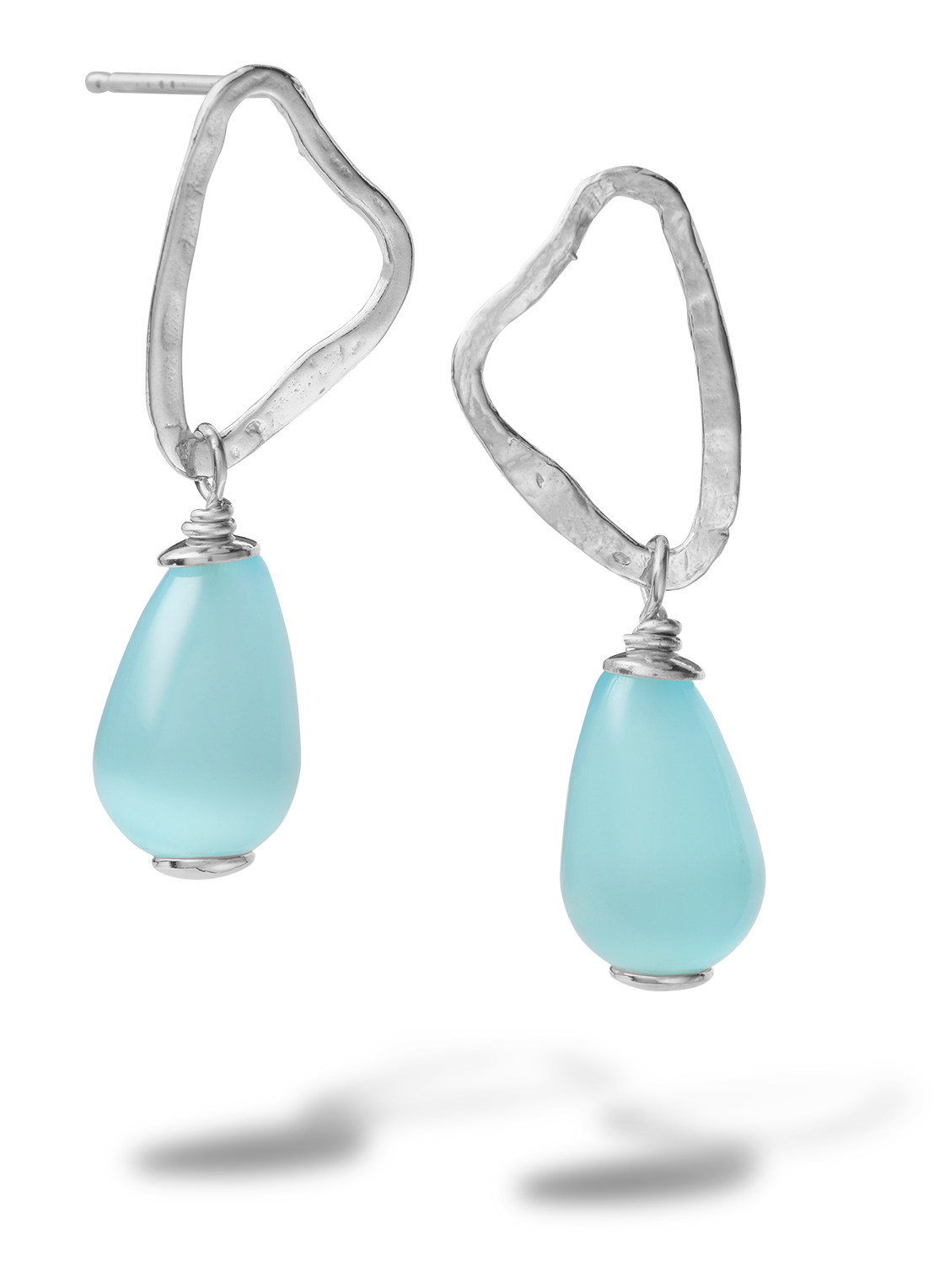 Zilveren organische oorhanger smet mintkleurige zirkonia parel