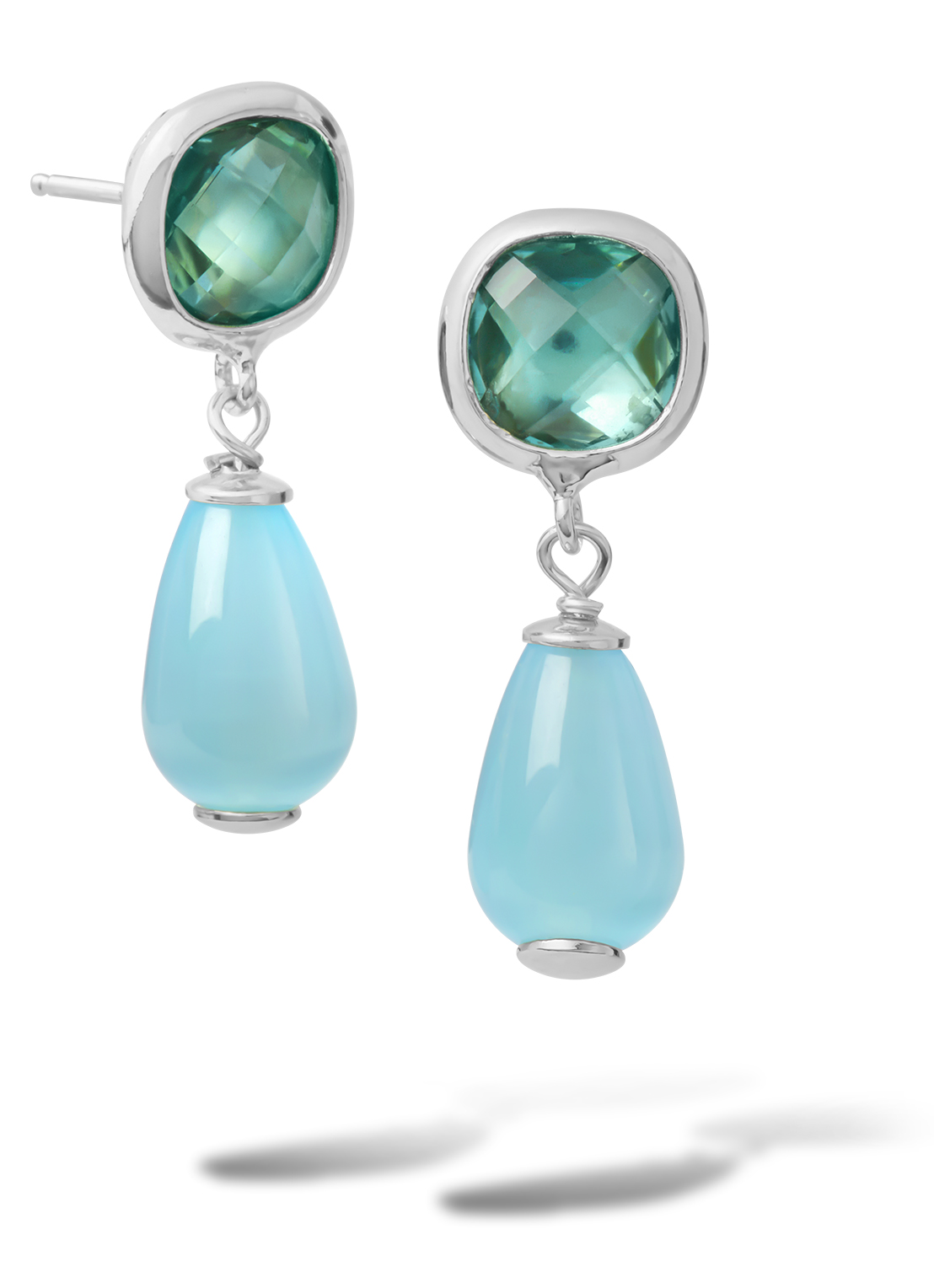Zilveren oorhangers met steker met mint zirkonia steen en parel, lengte 25 mm