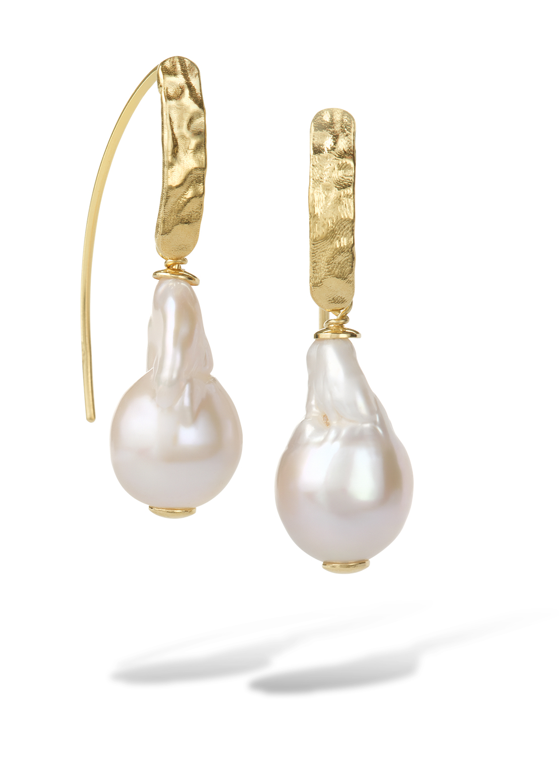 Goud vergulde zilveren oorhangers met een grote zoetwaterparel, lengte 40 mm