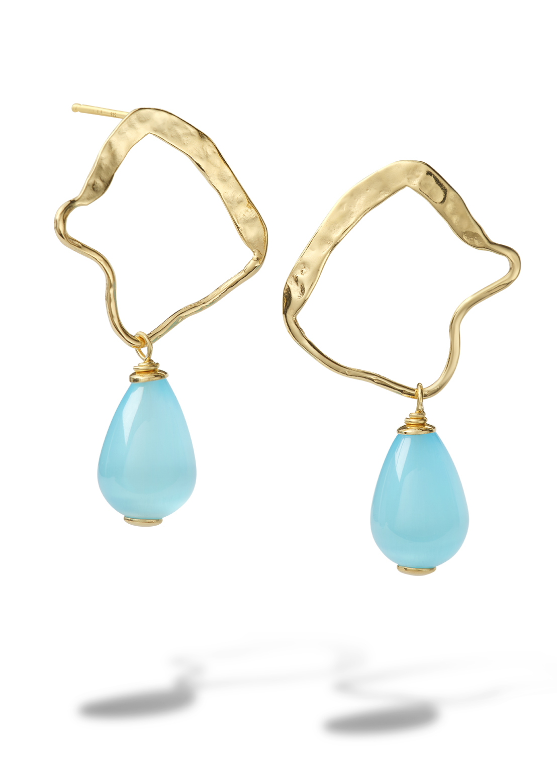 Goud vergulde organische oorhangers met mintkleurige zirkonia parel, lengte 40 mm